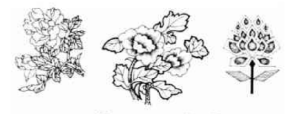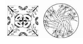 (2)适合式图案。即图案被组织在某一特定的外形内。适合式图案的特点就是因案必须自然完整地与外形相吻合,当外形去掉后,依然具有该外形的特征,所道合的外形可以是几何形,也可以是自然形。适合式图案的形式很多,有以下几种主要类型: