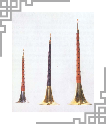 唢呐,双簧单管乐器,又名喇叭。明正德以来已在我国普遍使用。唢呐多为木制,管身开八个音孔(前七后一),杆的下端装有碗。唢呐音色高亢而明亮,除用于独奏、合奏外,也用于戏曲、歌舞伴奏。经过改革后的唢呐,有高音、中音、低音三种。代表作品:
