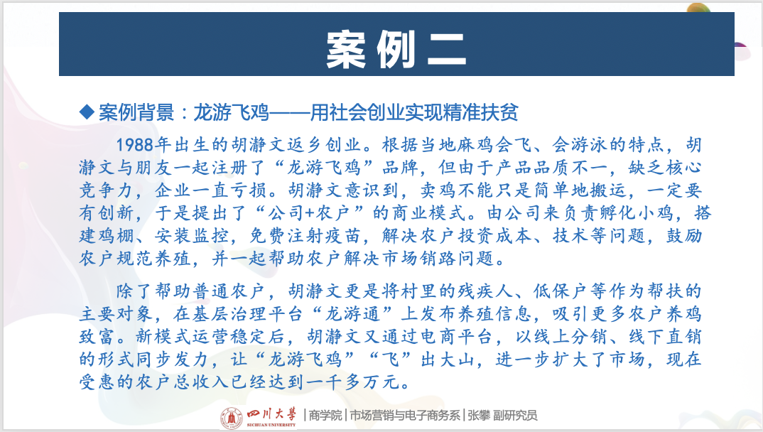 本案例通过理论讲解,分析社会营销观念的发展过程和主旨思想。以“龙游飞鸡”精准扶贫项目为例,解析社会营销理念对满足消费者需求、企业利润追求以及提供社会福祉三方面的融合。当今企业在满足消费者需求和追求自身利润的同时,要关注社会福祉,践行企业社会责任,实现顾客、企业和社会三赢的局面。