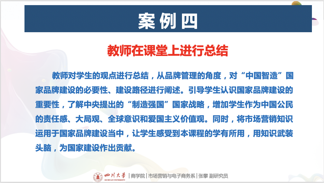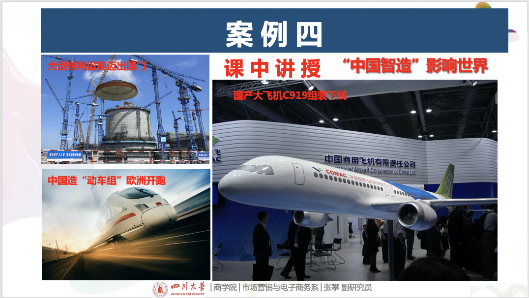习总书记在十九大报告中指出“青年一代有理想、有本领、有担当,国家就有前途,民族就有希望”。本案例通过聚焦“中国智造”,打造国家品牌,引导学生燃起“中国梦”,为实现中华民族的伟大复兴而奋斗。