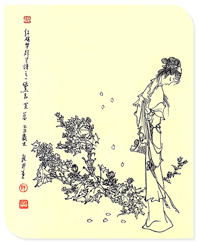 “似谶成真”,就是最后成真了。葬花词里面写的花落、红颜,事情完全跟真的是一致的。“自不知”,林黛玉当时写葬花词的时候并不晓得自己的结局是什么。但作者是晓得的,所以把她的遭遇都写在葬花词里。“安得返魂香一缕”。返魂香是传说里一种香,人可以死而复活,所以叫“返魂香”。“起卿沉痼”,就是把你的绝症给治好,起死回生。“续红丝”,过去说婚姻是用红的丝绳给牵起来了,千里姻缘一线牵。