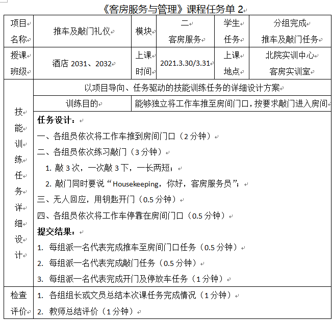 6. 服务员离开楼层时,需将工作车推回工作间。