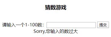 2.制作一款网络版的猜数游戏,随机产生一个1-100之间的整数,让玩家猜测。玩家通过网页提交所猜的数据,程序根据用户的输入给出相应的提示,如果玩家猜的数大了,则输出“你输入的数太大了,请重新输入!”,否则如果玩家输入的数小了,则输出“你输入的数太小了,请重新输入!”,直到玩家猜对为止,此时“输出恭喜你,猜对了!”(利用全局变量)要求上传代码文件和界面截图。