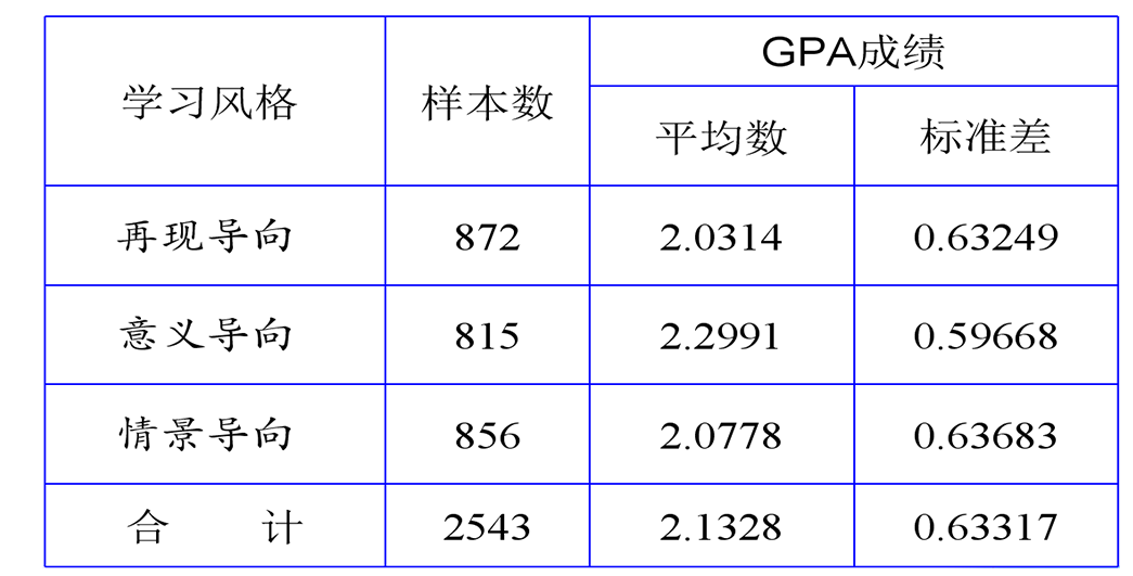 采用第一种学习风格学习的学生其成绩要显著高于采用后两种学习风格学习的学生。