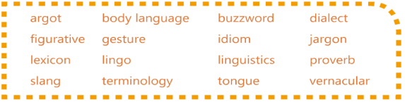 Directions: Study the words and expression related to language. Use them to make sentences as in the example. Then finish the quiz below.