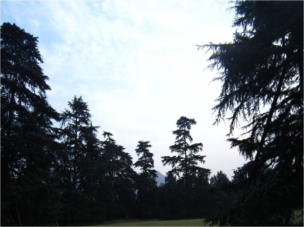 当甲风景点在远方,或自然的山,或人文的建筑(如塔、桥等),它们本身都很有审美价值,如果视线的两侧大而无当,就显得单调乏味;如果两侧用建筑物或树木花卉屏障起来,使甲风景点更显得有诗情画意,这种构景手法即为夹景。