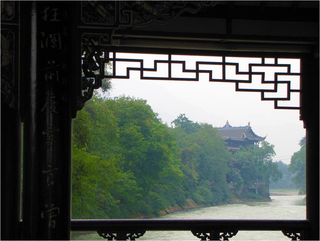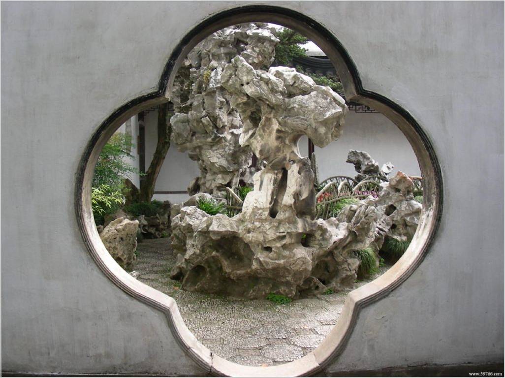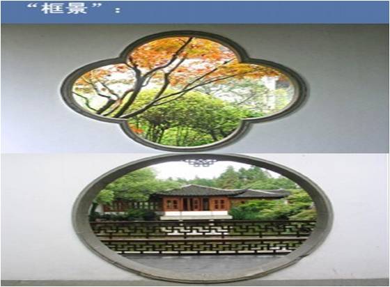 以园林中建筑的门、窗、洞,或乔木树枝抱合成的空间作为景框,将风景框起来,使人产生风景如画的感觉,这便是框景。