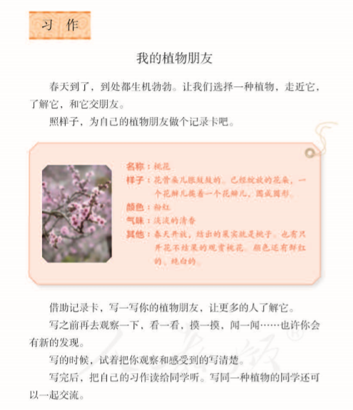 案例1:三年级下册“我的植物朋友”习作内容分析与设计