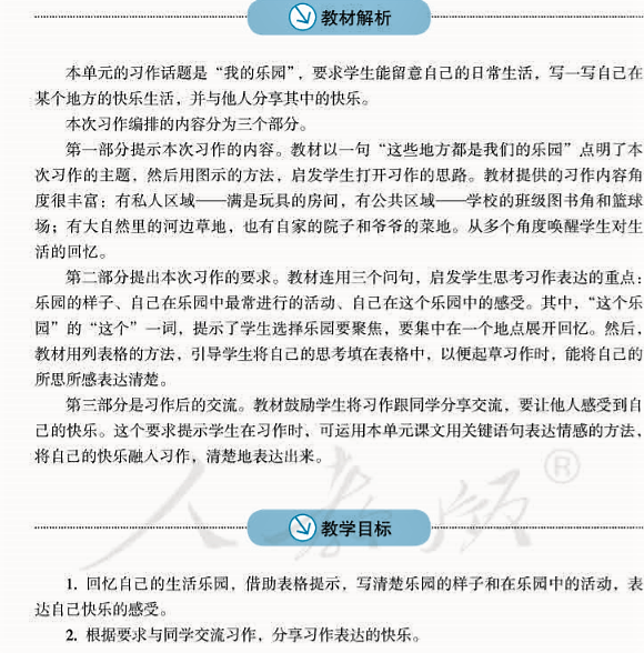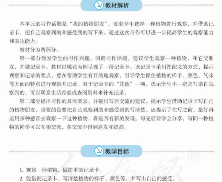 下面我们具体看本单元教材中的习作教学内容,以及教学参考书中对这一习作内容的分析。