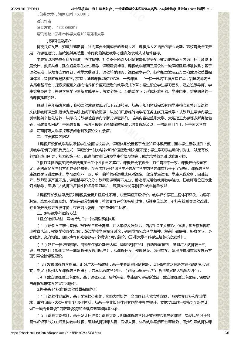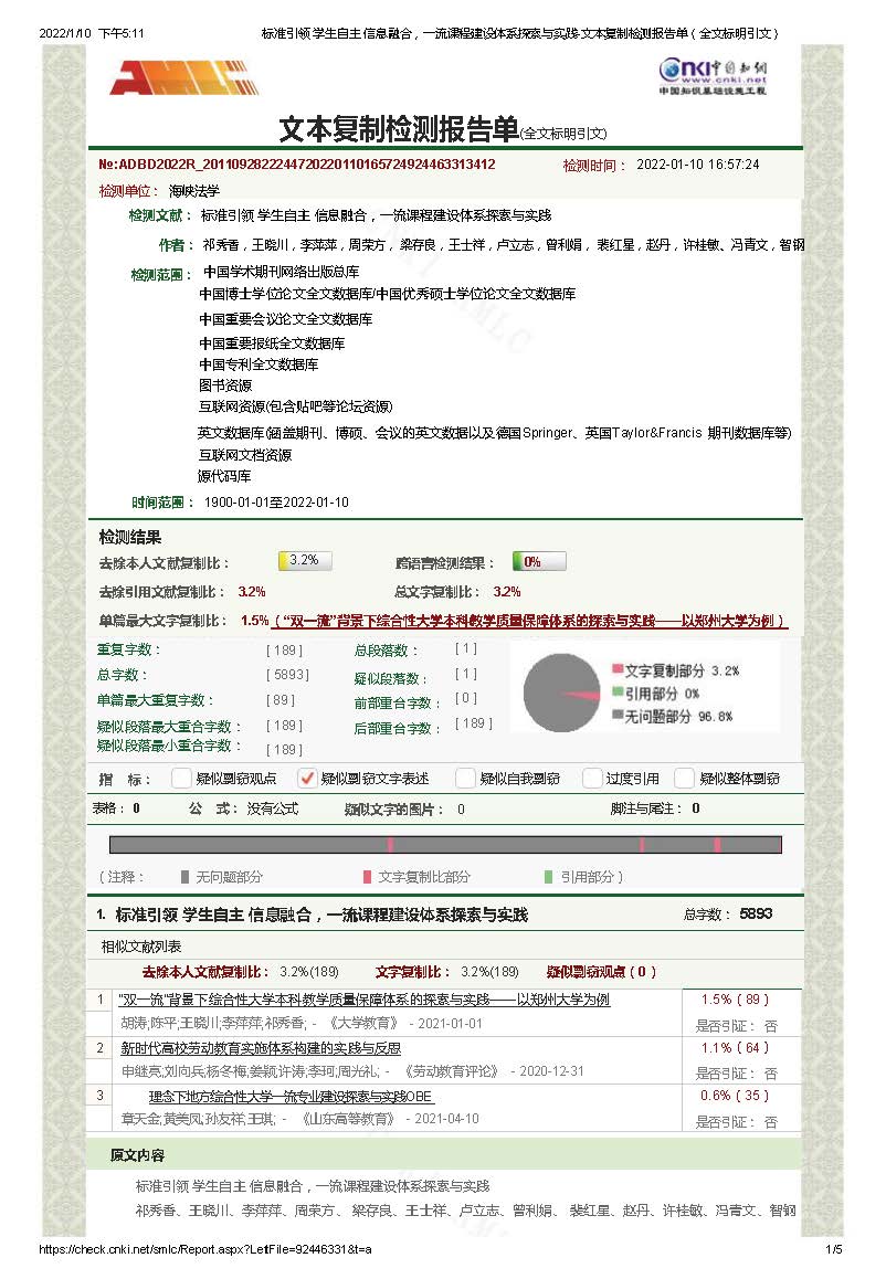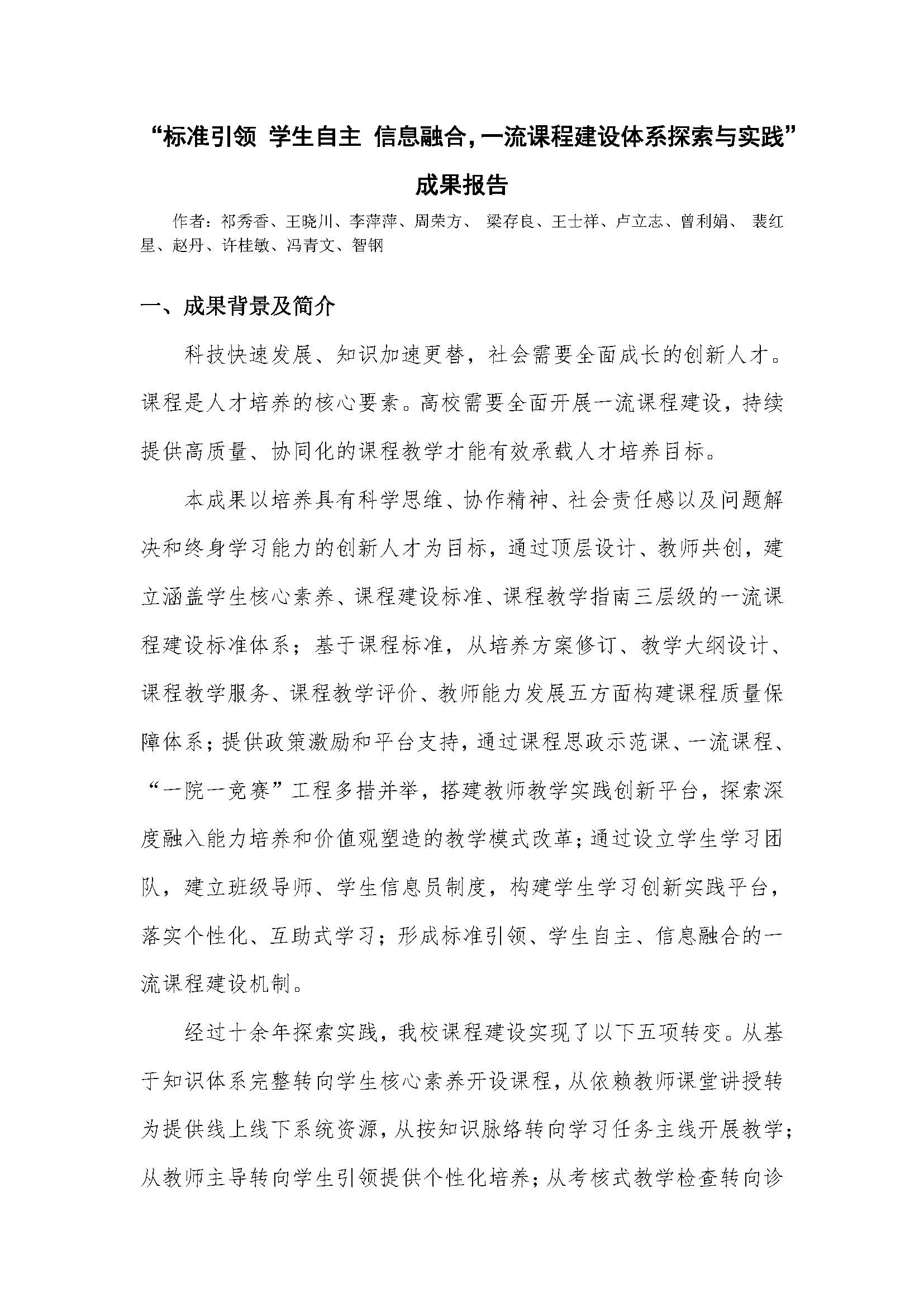 “标准引领 学生自主 信息融合”一流课程建设体系探索与实践