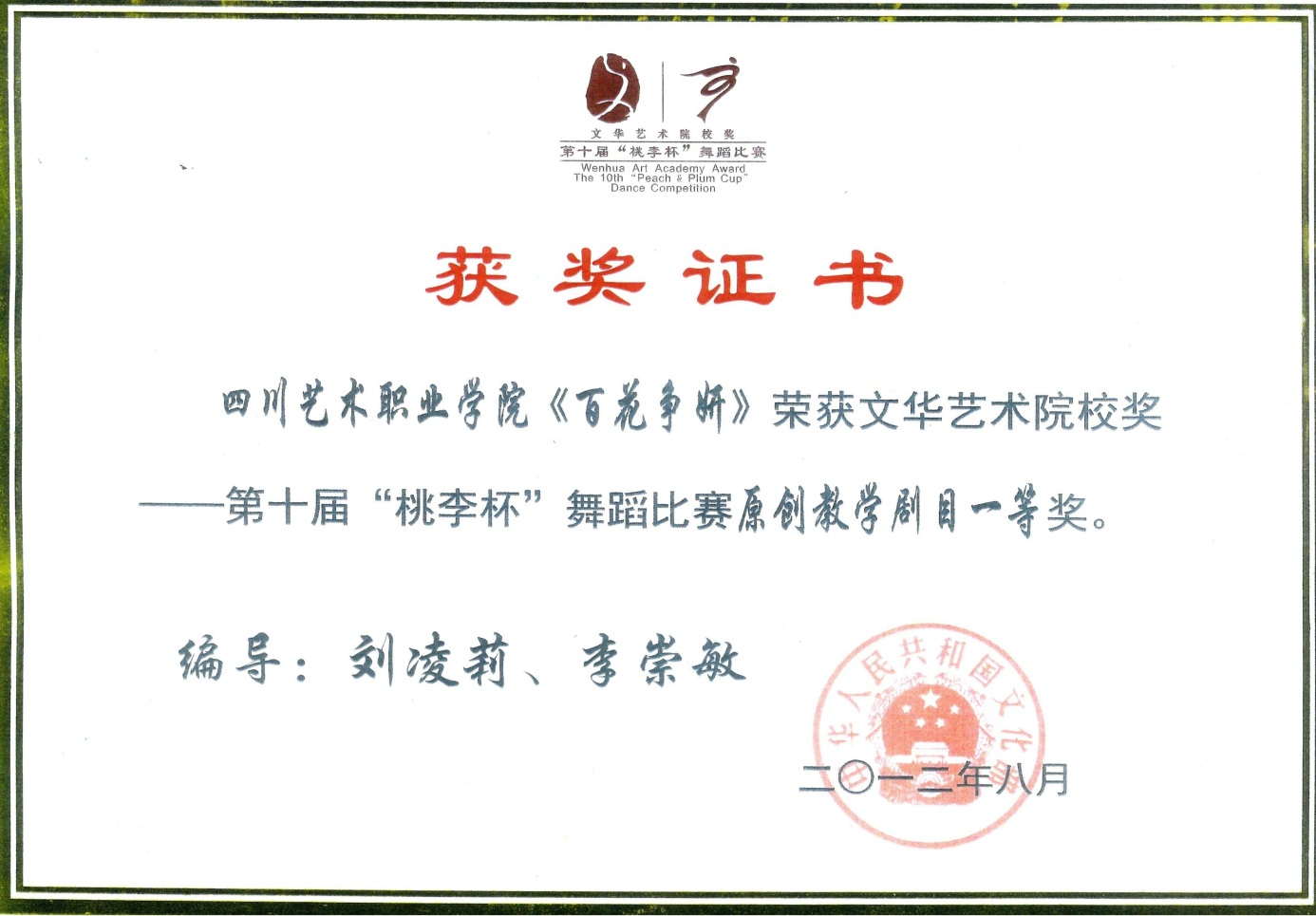 3.8 《百花争妍》荣获文华艺术院校奖-第十届“桃李杯舞蹈比赛原创教学剧目一等奖”