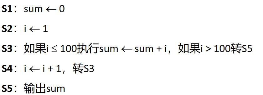 例:计算1+2+…+100的和,算法和数据结构设计: