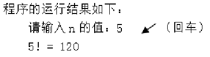 根据公式,1! = 1,这是本问题的递归终止条件。由终止条件得到1!的结果后,再反来依次计算出2!,3!,......,直到最后计算出n!。