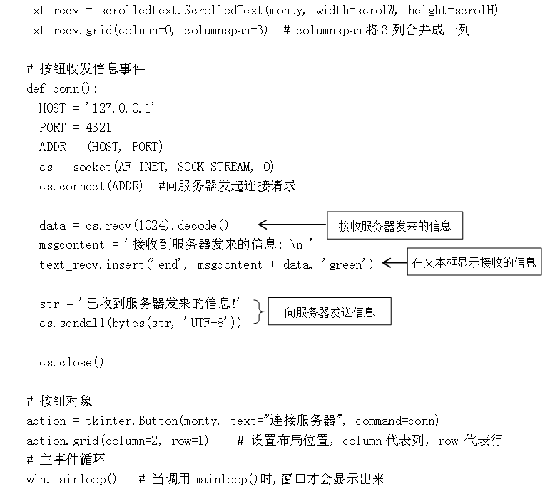 print('\n',t,'发来信息:\n ',d) #打印输出接受数据