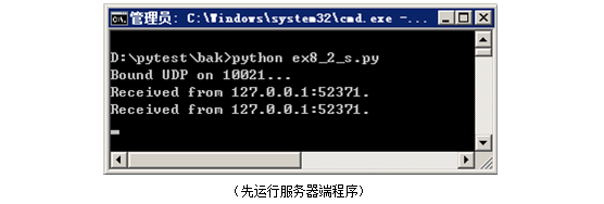 data, addr = s.recvfrom(1024) print('Received from %s:%s.' % addr)