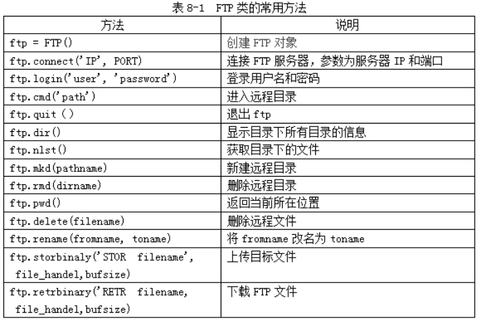 在Python系统中默认安装的ftplib模块中定义了FTP类,应用ftplib模块中的FTP类,可以很方便地编写ftp客户端,用于上传或下载文件。