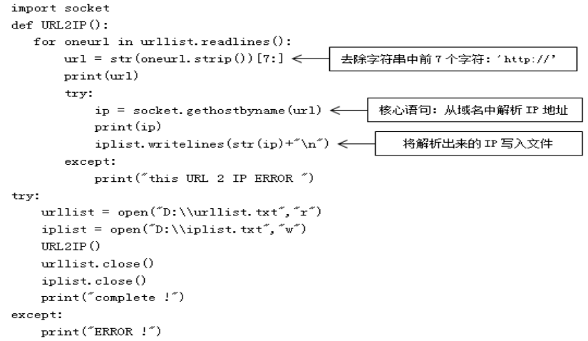 【例6】设文本文件urllist.txt中存放网站域名如下: