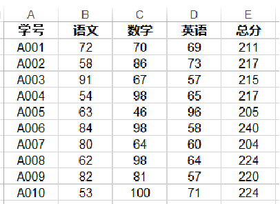 已知某个班级的某次考试成绩信息包括学号、语文、数学、英语、总分,该成绩信息保存在一张Excel表中,部分信息如图所示,现在要求将其读入到数据库中去。同时实现以下功能: