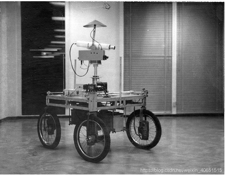 1979年:斯坦福推车,一个遥控,配备电视的移动机器人,由当时的机械工程研究生詹姆斯·L·亚当斯于1961年创建。1979年,一个“滑块”或机械旋转,将电视摄像机从侧面移开 -当时的博士生汉斯莫拉维克补充道。在大约五个小时内,购物车成功地越过了一个没有人为干扰的充满椅子的房间,使其成为最早的自动驾驶汽车的例子之一。