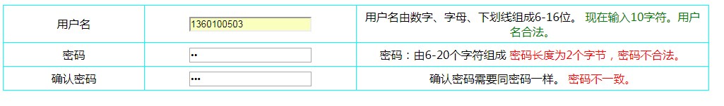 oUserinf.innerHTML = "现在输入"+size+"字符。用户名合法。";