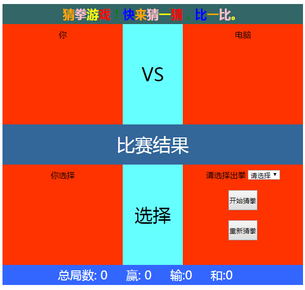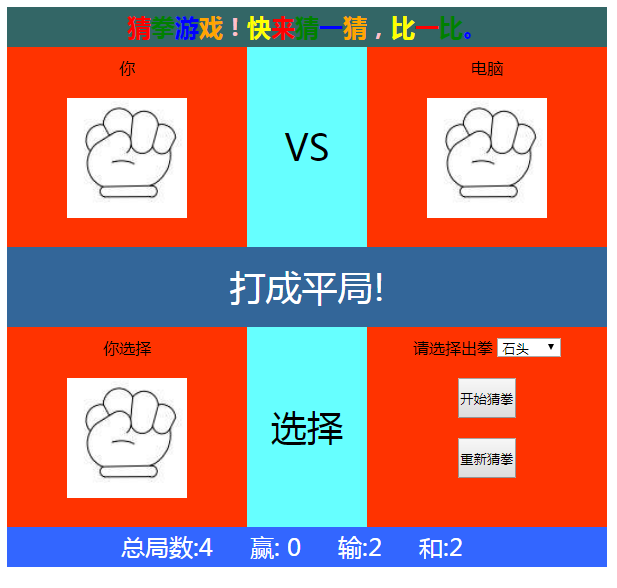 <!--<h2 id="gameTitle"><font color="red">猜</font><font color="green">拳</font><font color="blue">游</font>戏!快来猜一猜,比一比。</h2>-->