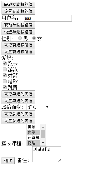 <input type="button" id="btn5" value="获取复选按钮值"><br>