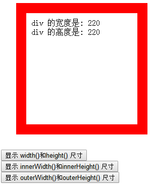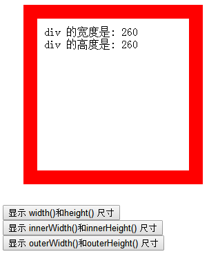 <input type="button" id="btn3" value="显示 outerWidth()和outerHeight() 尺寸"><br>