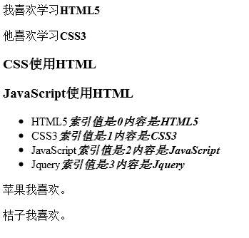 return "<strong><i>索引值是:"+index+"内容是:"+html+"</i></strong>";