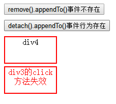 <input type="button" id="btn6" value="detach().appendTo()事件行为存在"><br>