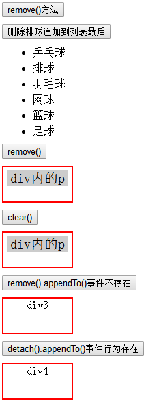//$('ul li:contains("羽毛球")').remove();//通过内容过滤选择器实现