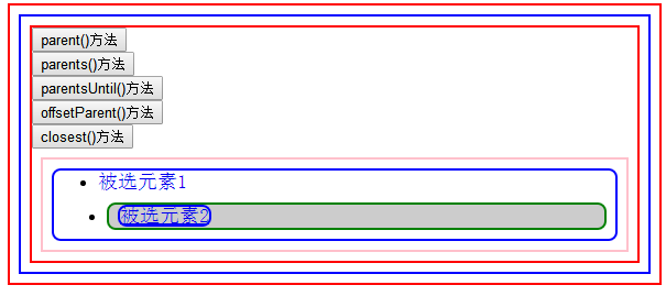 //5. closest(参数):返回匹配所传递的表达式的第一个单一祖先