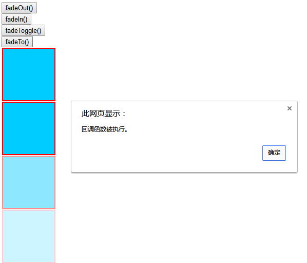 $('#div4').fadeTo(1000,0.2,function(){alert("回调函数被执行。");});