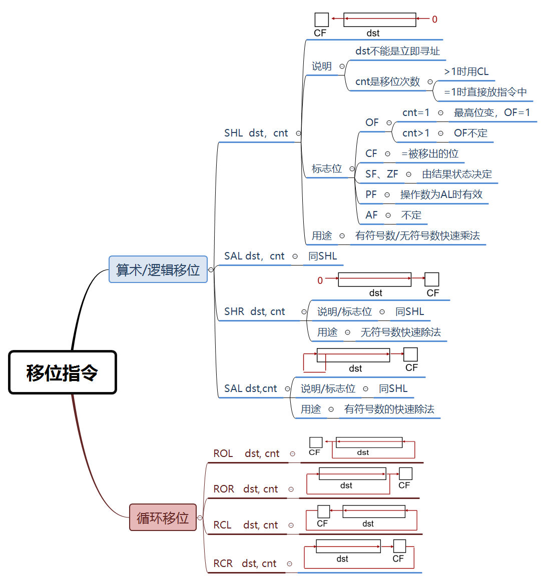 2)掌握算术右移SAR和逻辑右移指令SHR的区别
