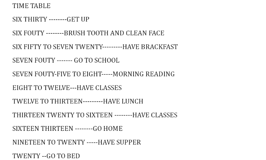 Do you understand the followingTimetable ?