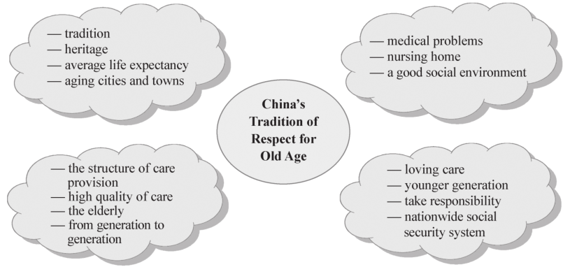 Student D: Right. The structure of care provision here in China needs improvement, so that old people can receive high quality of care. Through its tradition of respect for the elderly, China’s heritage will be carried on from generation to generation.