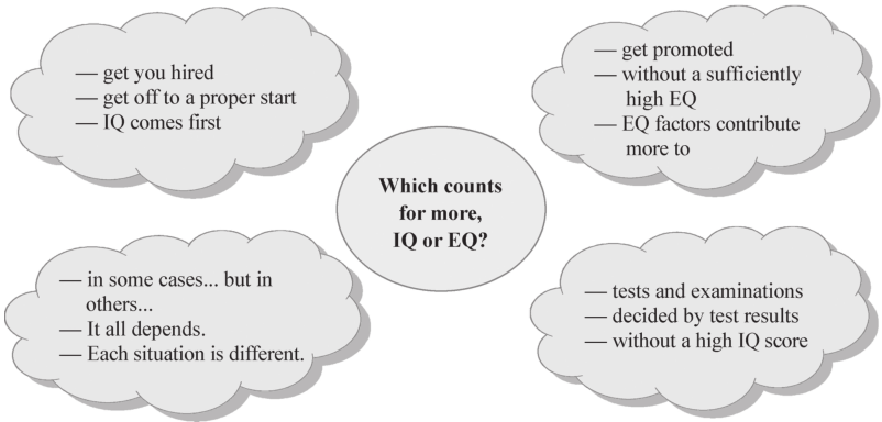 Student D: OK, in some cases, IQ does count more. But in others, EQ does. It all depends. Each situation is different.