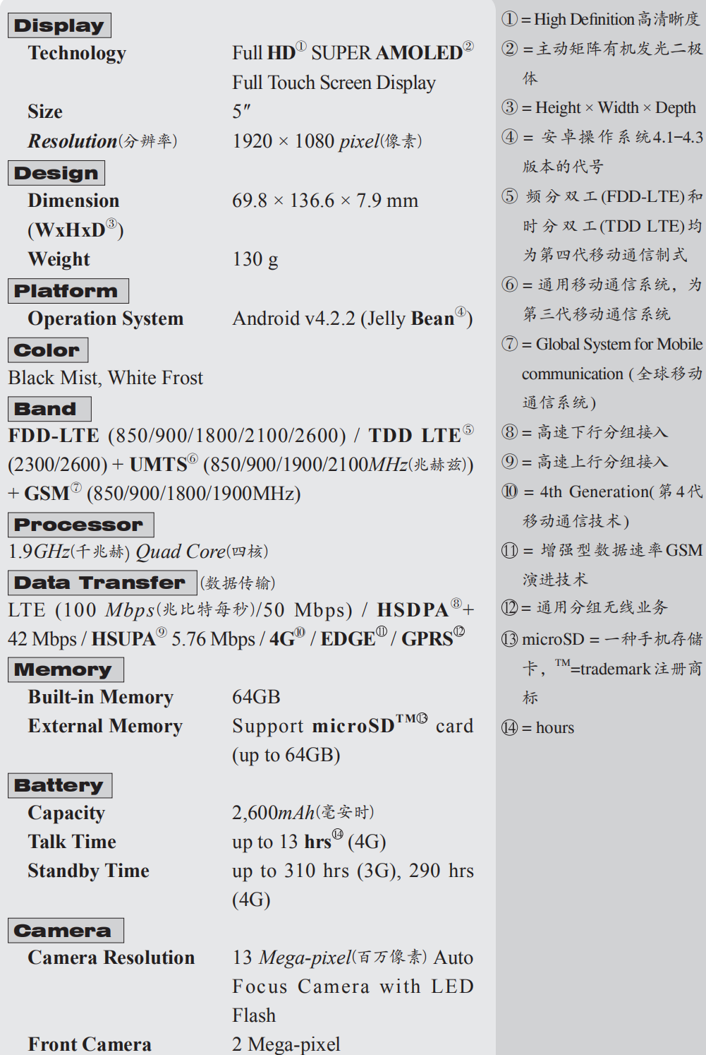 ● The following is a table containing specifications for a Motorola cell phone. After reading it, you are required to fill in the brackets with English words equivalent to those given in Chinese in the table below.