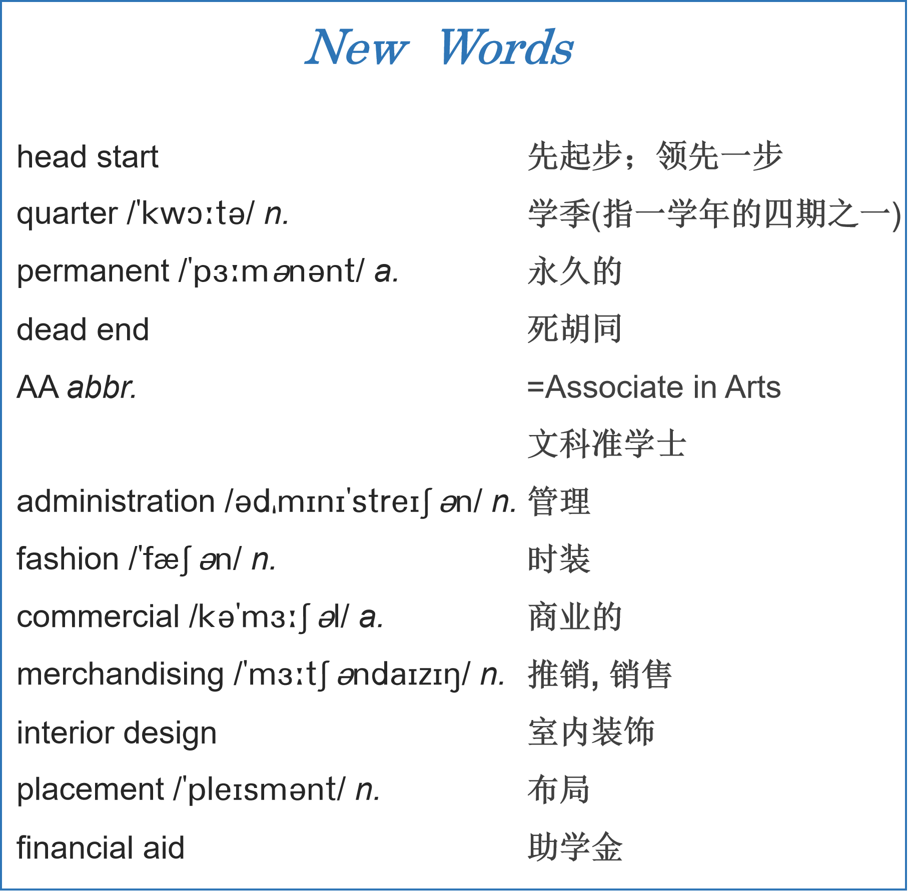 ● 3. Before you listen to the upcoming conversation, read the following word and expression which may be new to you.