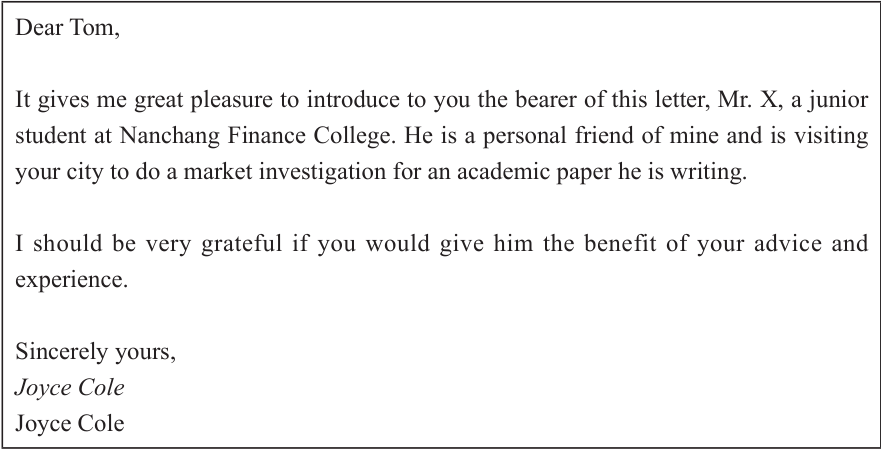 你的朋友是某校学生,他为了写论文将去你认识的一个人所在的城市做市场调查,你给他写一封介绍信。