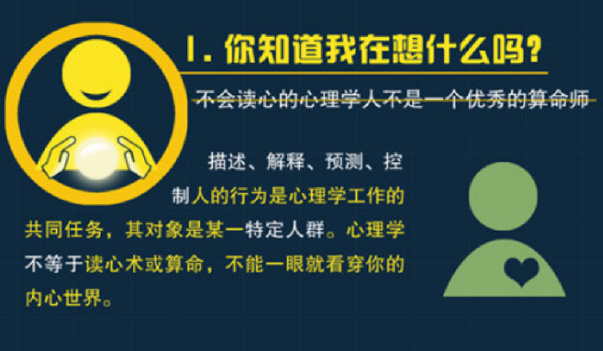 1、可能有的同学认为心理学就是给人做咨询或者“算命”,不可否认,心理咨询是心理学中的重要部分,它帮助个体了解自己,促进自我成长。 在2020年1月至今的新冠病毒疫情下,国家对大家的心理健康状况也极为重视,连下几条文件,要求各省市设立疫情心理援助热线。