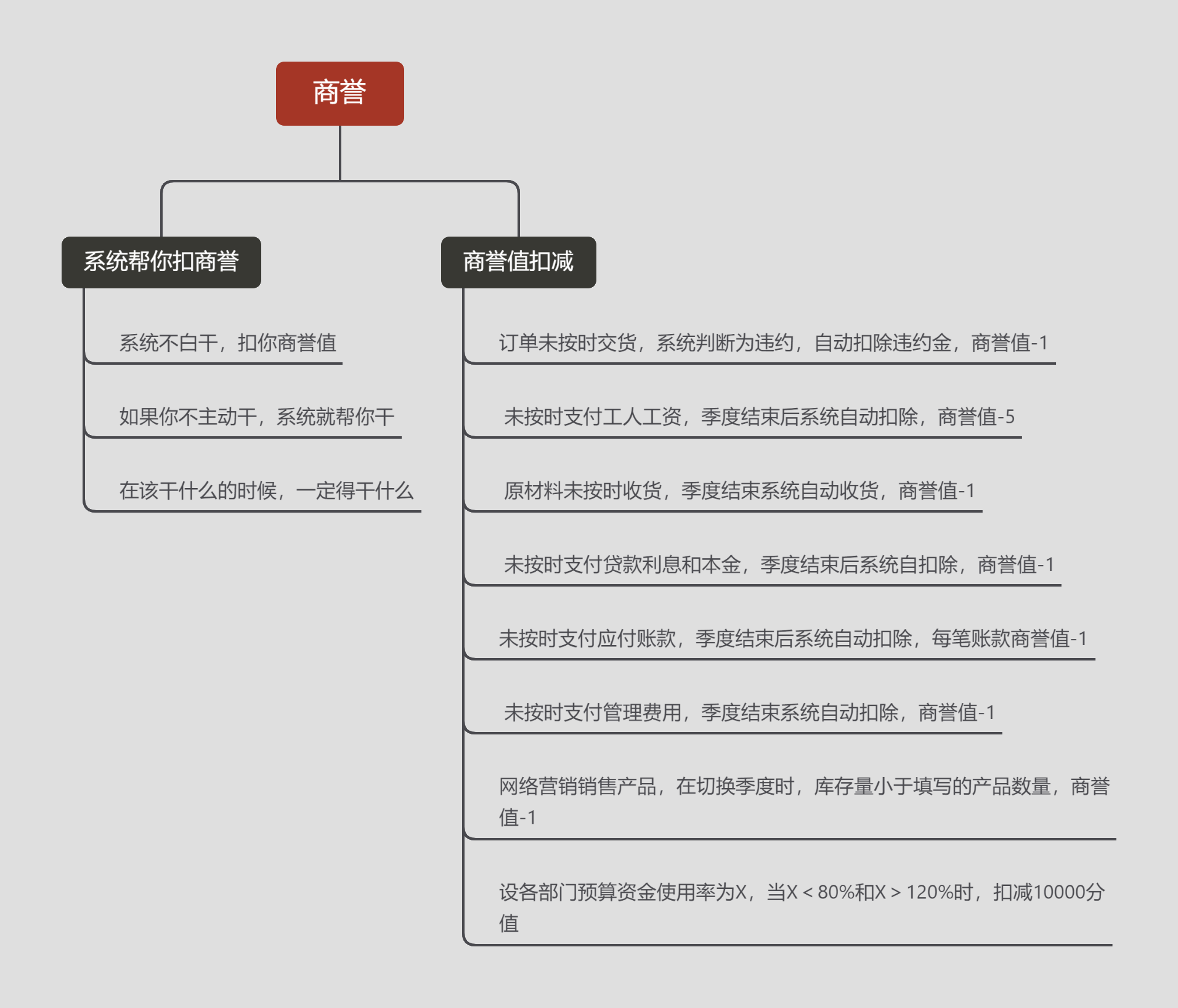 (5)未按时支付应付账款,季度结束后系统自动扣除,每笔账款商誉值-1