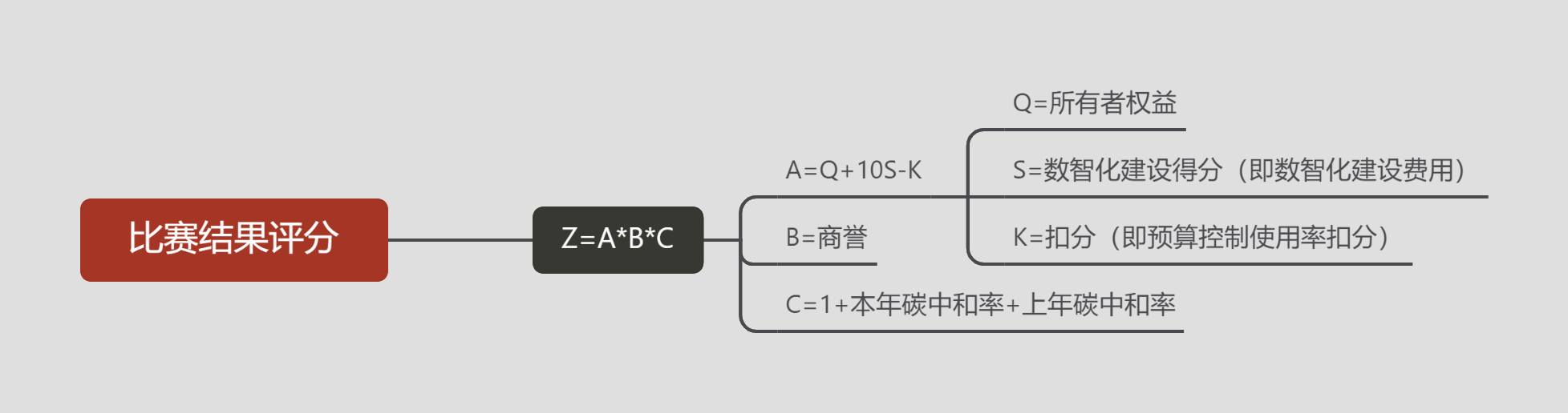 1.经营结果最终得分最终得分:Z=【所有者权益+数智化建设得分(即数智化建设费用)*10-扣分(即预算控制使用率扣分)】*商誉*(1+本年碳中和率+上年碳中和率);
