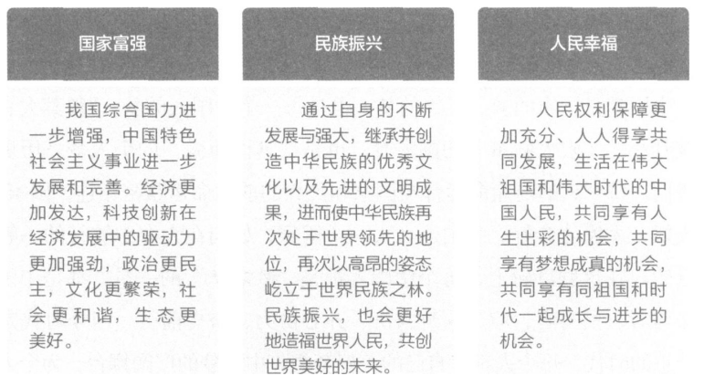 中国梦内涵丰富、视野宽广、意蕴深远。习近平指出:“中国梦的本质是国家富强、民族振兴、人民幸福。”