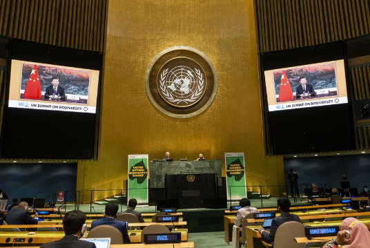 Chinese President Xi Jinping addresses the United Nations Summit on Biodiversity via video on Sept. 30, 2020. (Xinhua)