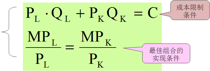 因为:等成本方程:C=.L+