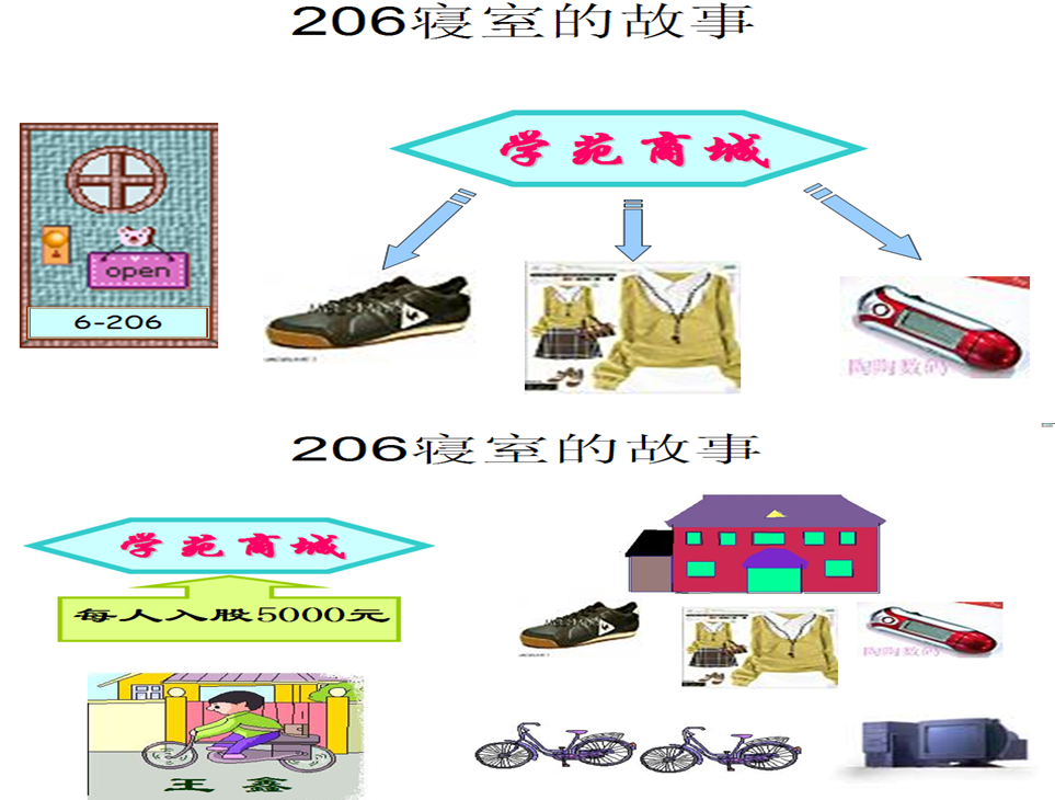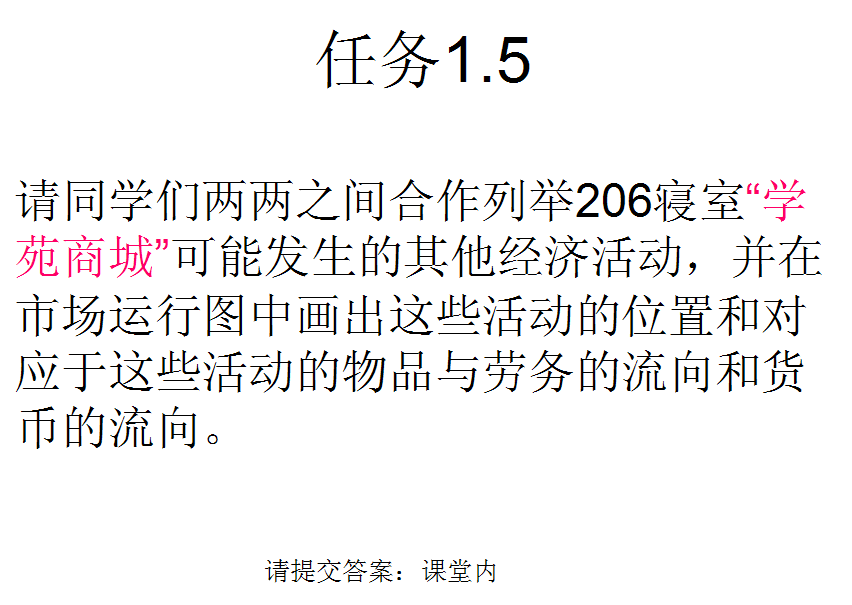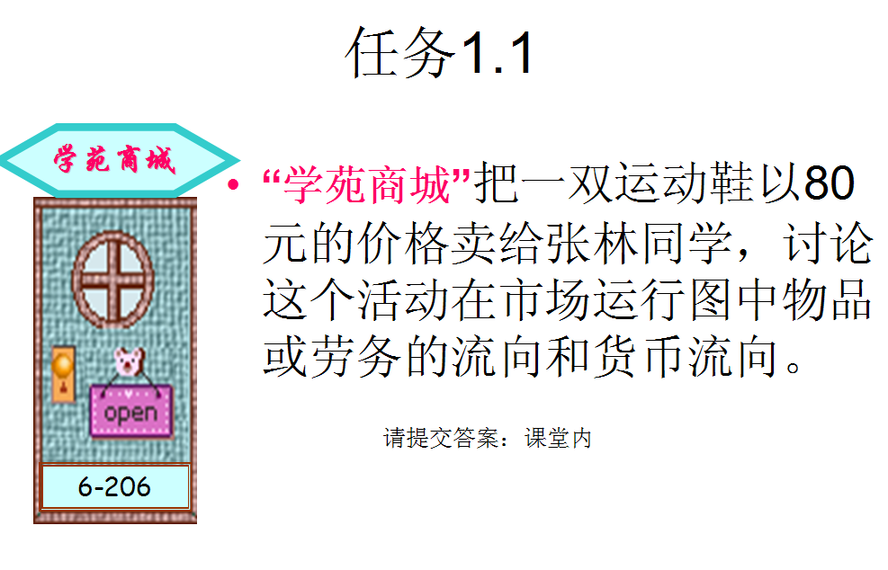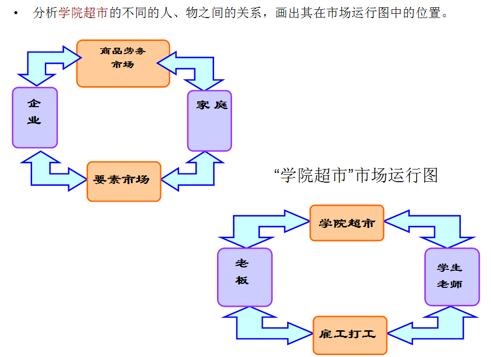 1、•分析学院超市的不同的人、物之间的关系,画出其在市场运行图中的位置。