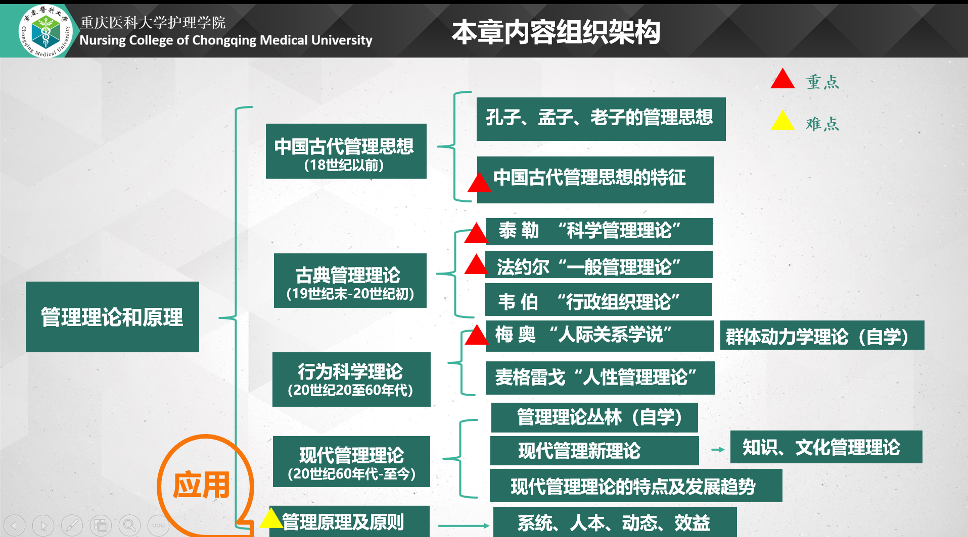 2.技能目标:掌握古典管理理论、人际关系学说在护理管理中的应用情景;熟悉管理原理在护理工作中的应用;