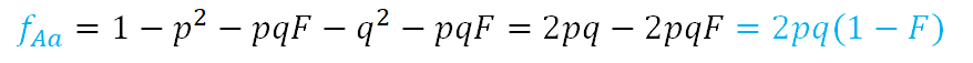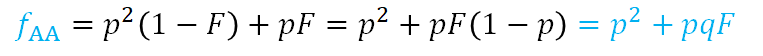 基因型频率与近亲系数F、群体基因频率为p和q的关系如下:
