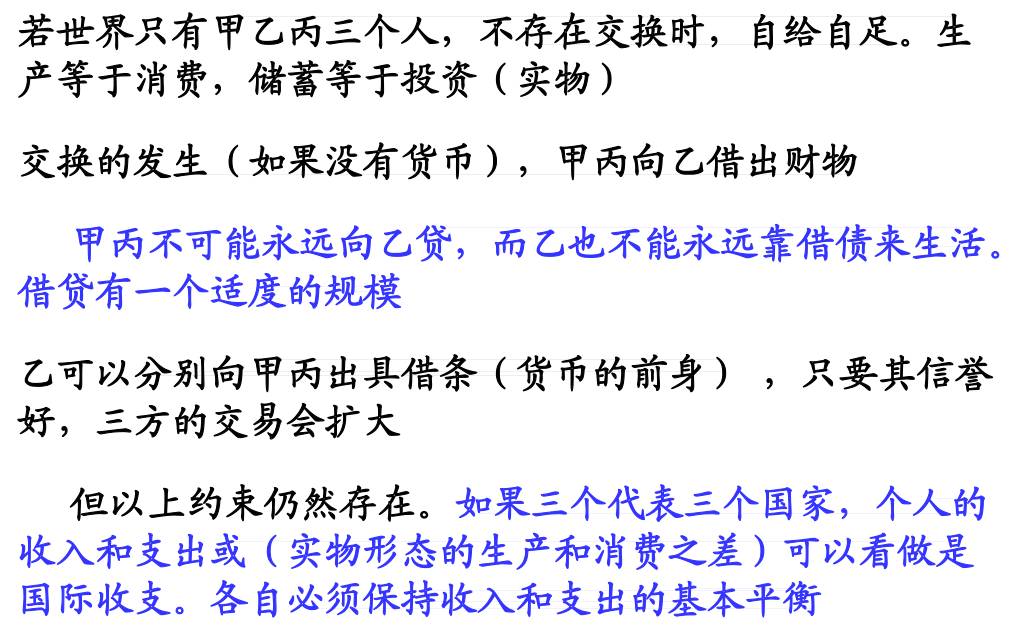 美国一居民手持1USD 第一天上午在美国境内,花0.1USD买一杯啤酒喝,余下0.9USD;下午到墨西哥境内,按1USD=3MP的汇率兑换到2.7MP。其中花0.3MP再买一杯啤酒喝,余下2.4MP带回美国。 第二天上午到美国银行,按1USD=2.4MP的汇率换回1USD,其中花0.1USD买一杯啤酒喝,余下0.9USD;下午到墨西哥境内,按1USD=3MP的汇率兑换到2.7MP。其中花0.3MP再买一杯啤酒喝,余下2.4MP带回美国。 第三天、第四天、第五天…… 此人每天喝2杯啤酒而手持金额一直为1USD