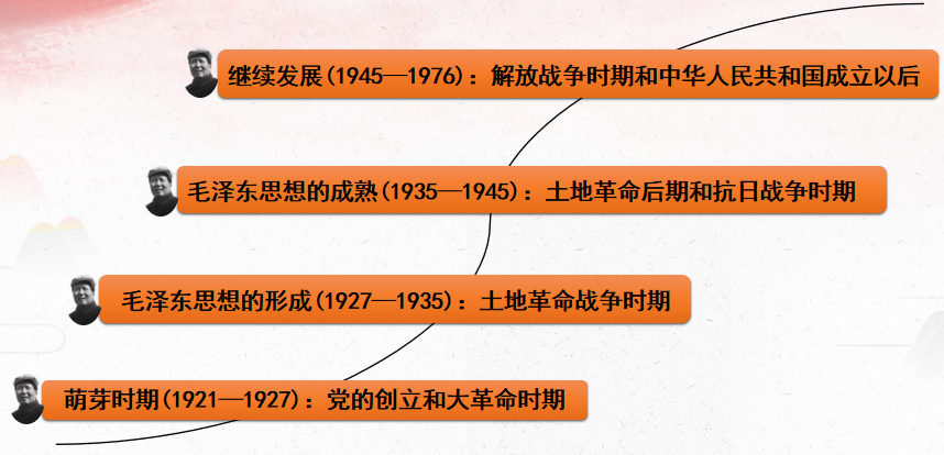 二、土地革命战争后期到抗日战争时期,是毛泽东思想得到系统总结和多方面展开而达到成熟阶段。